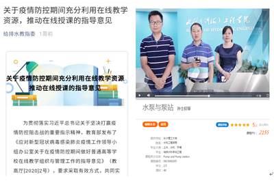 给排水系组织老师们积极对接给排水教指委,依据给排水教指委指导意见,利用超星学习通、腾讯课堂、中国大学MOOC、QQ群视频、钉钉会议等教育部推荐的慕课平台,与其他给排水高校建立在线课程互助系统,共享“金课”师者。给排水系根据william学生及课程体系特征,积极研讨、认真甄选,选择超星学习通及哈工大等985高校优秀课程资源,作为共享“金课”师者平台与师者课程。