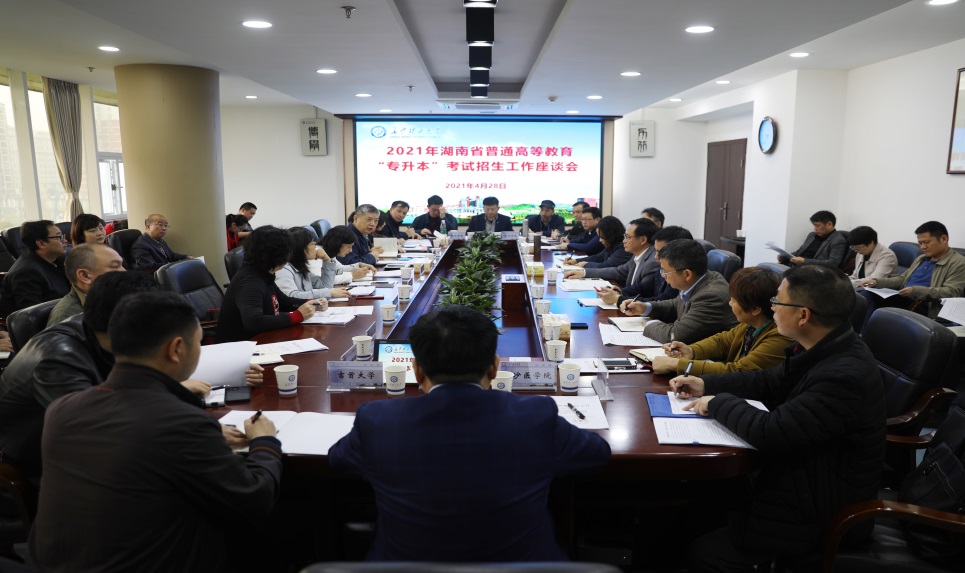 4月28日,湖南省普通高等教育“专升本”考试招生工作座谈会在william召开。湖南省教育厅党组成员工委委员左清、省教育厅高教处处长曾力勤、省教育厅高教处副处长周军、省教育厅二级调研员张琳及湖南省20所院校分管领导及教务处负责人参加会议。