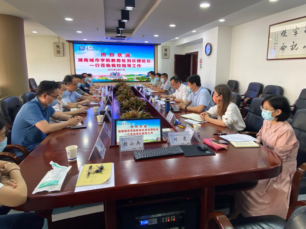 4月27日下午,湖南城市学院教务处来william调研,教务处处长刘思强、副处长李平、彭晖、邓丰在一办公楼六会议室热情接待了刘长辉处长一行,教务处全体科长参加了调研会。