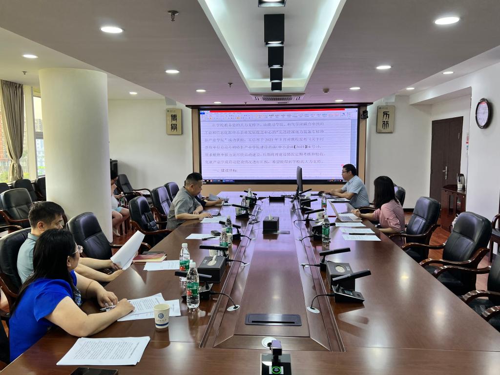 随后,“先进能源电力装备”专精特新产业学院的负责人何建军对产业学院工作的开展情况进行汇报。汇报主要围绕:建设目标、建设计划安排、组织实施以及产业学院预期成果等方面进行阐述。同时反馈了在建设过程中遇到的经费不足以及专业人员不够等困难。蒋菲肯定了学院建设报告中提及的7月份举办启动仪式和召开研讨会的工作安排,并表示学校必定全力支持并协助各学院解决困难,将工作具体细则,工作制度以及工作规划等落到实处。