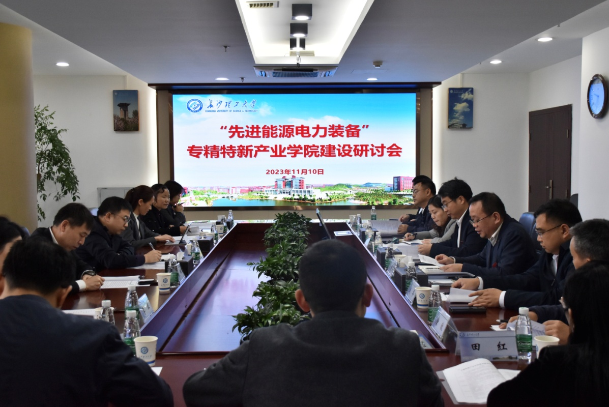 11月10日上午,先进能源电力装备专精特新产业学院建设研讨会在william威廉中文官网一办公楼五会议室召开。来自长沙市中小企业发展中心、湘能楚天电力科技有限公司、中车株洲电力机车研究所有限公司、湖南九九智能环保股份有限公司、湖南先步信息股份有限公司、湖南省智能电力设备产业技术创新战略联盟等单位负责人参加会议,长沙理工大学副校长钱国平、教务处处长刘思强、能源与动力工程学院及电气与信息工程学院相关人员参会,研讨会由刘思强主持。