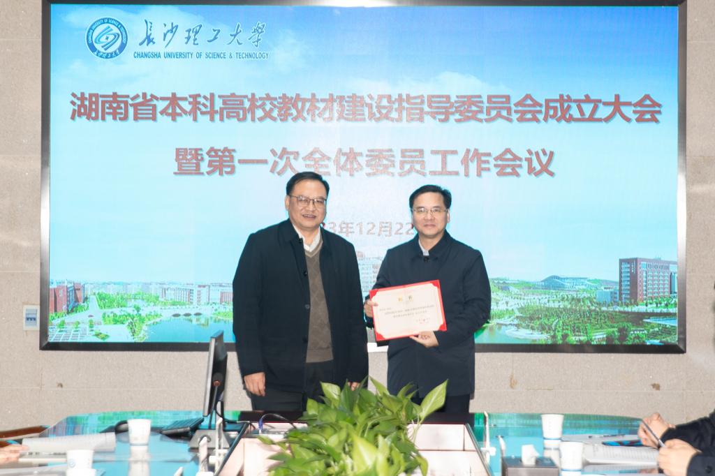 教务处处长刘思强介绍了学校教材建设工作举措和建设成果;刘朝晖为教指委委员颁发了聘书;会议还邀请了重点领域教学资源建设项目管理办公室副主任许长江做了题为“知识图谱赋能新型教材建设”的专题讲座。