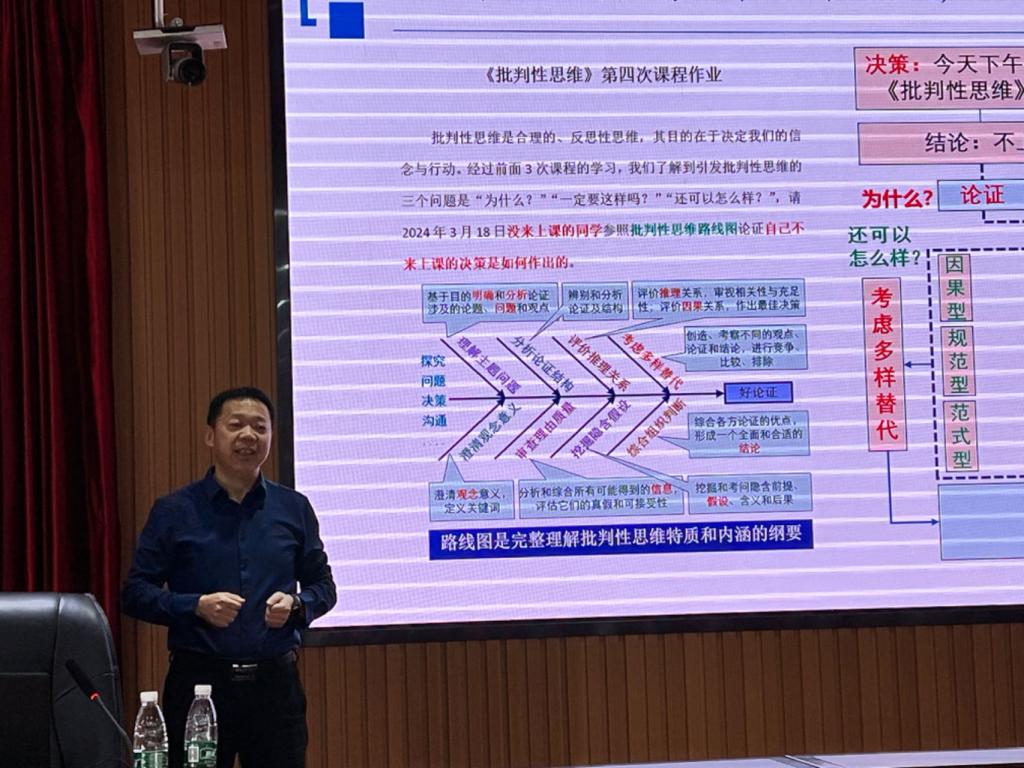 首先,邓丰对各位老师的出席表示感谢,并介绍了国家对高校课程思政建设的重视以及william课程思政建设的基本情况。接着,杜荣华教授通过介绍课程思政的发展历程,分析课程思政与思维教育融合发展的底层逻辑,结合自身课程建设和教学经验,深入浅出的介绍了思政建设与思维教育融合发展的实施途径和实施方式。老师们也就如何将思政教育与课程建设和专业建设相融合与杜荣华教授展开了激烈的讨论。最后,邓丰总结,高校课程思政建设旨在使学生在学习过程中不仅获得知识和技能,更重要的是树立正确的世界观、人生观和价值观,增强社会责任感和使命感。所以思政教育不止于课堂,更应延伸至课后,全员、全程、全方位的培育人才。