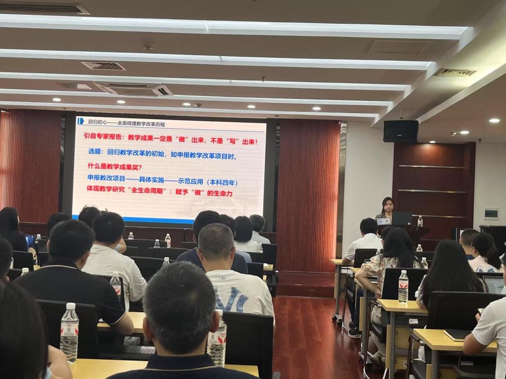 万琴以“国家级教学成果奖成长之路”为主题,围绕教学成果奖的申报全过程展开了深入细致的讲解。她从教学成果奖的定义、教学改革历程、申报及改革内容、附件及总结四个关键方面,系统梳理了申报工作的要点与脉络。万琴着重强调:“教学成果一定是‘做’出来的,不是‘写’出来的!教学成果奖体现的是教学研究的‘全生命周期’,要赋予‘做’的生命力。”她指出,申请书的撰写需要经过多次打磨与优化,教学成果奖不仅仅是成果的展示,更重要的是成果取得的全过程以及应用推广的价值,这为教师们在申报材料准备上提供了清晰的方向。讲座结束后,与会教师们踊跃提问,就“如何凝练教学成果精华”等困惑与万琴展开了充分地交流探讨。