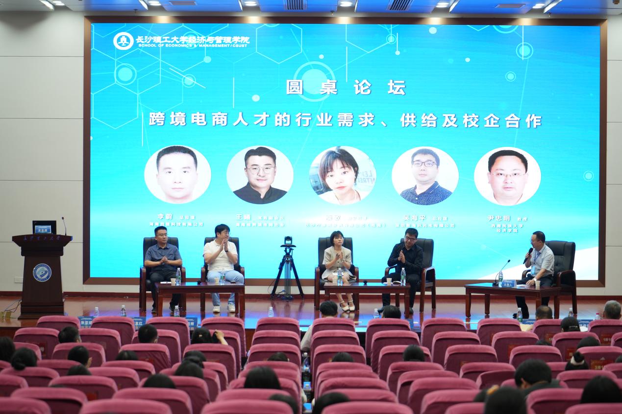 第三场圆桌论坛主题为“跨境电商人才的行业需求、供给及校企合作”,由西南民族大学经济学院尹忠明教授主持。深圳新海讯光电有限公司总经理吴海平、长沙柠檬树皮具有限公司(电商)副总经理潘敏、湖南省跨境电商协会常务副会长王曦、湖南竞捷科技有限公司总经理李蔚等就跨境电商人才的行业需求、校企合作等方面展开了讨论,认为目前跨境电商人才供需矛盾突出,人才紧缺问题依然存在,今后的校企合作中,应加强校企交流,充分利用校企资源实现优势互补,提高跨境电商人才培养质量。