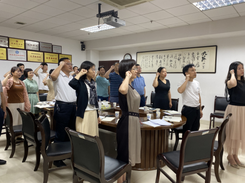 首先,支部副书记蒋菲同志带领全体党员同志整装肃立,举起右手,一起重温入党誓词。支部书记刘朝晖同志向全体党员作述职报告,重点介绍支部开展党史学习教育的情况。他从以下四个方面进行述职:一是深化理论学习,提高党员思想认识;二是组织实践活动,加强支部凝聚力和战斗力;三是学史力行,积极为师生办实事;四是存在的问题及改进措施。