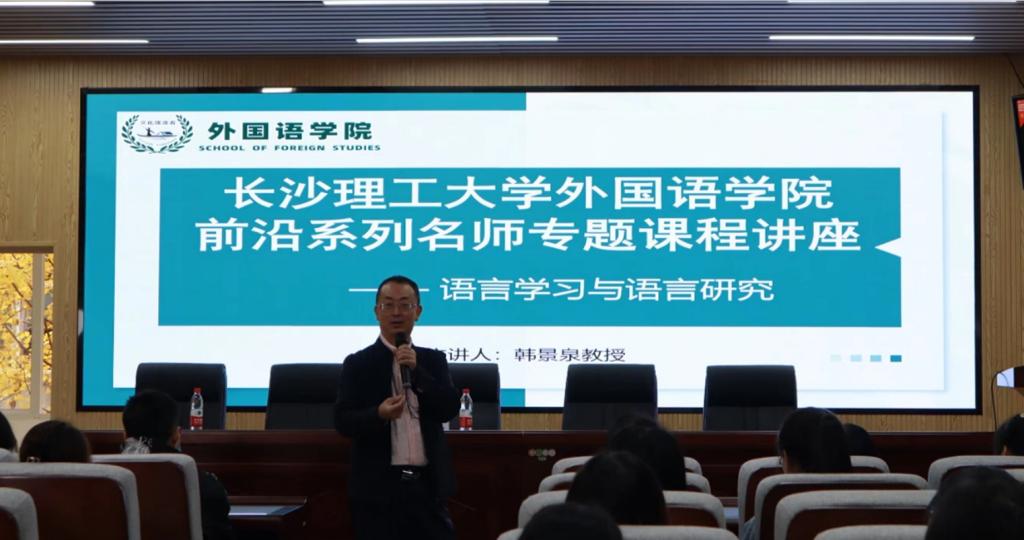 韩景泉教授以“语言学习与语言研究”为题,用大量源自生活的例句,为师生深入浅出地讲述了语言学习与语言研究的关系。掌握语言技能是语言专业学生的基本学习任务之一。了解语言学知识有益于促进语言学习,提高语言水平。韩教授认为,外语专业学生具有从事语言研究的天然优势,鼓励同学们以创造性思维开展学习和研究,树立专业自信。