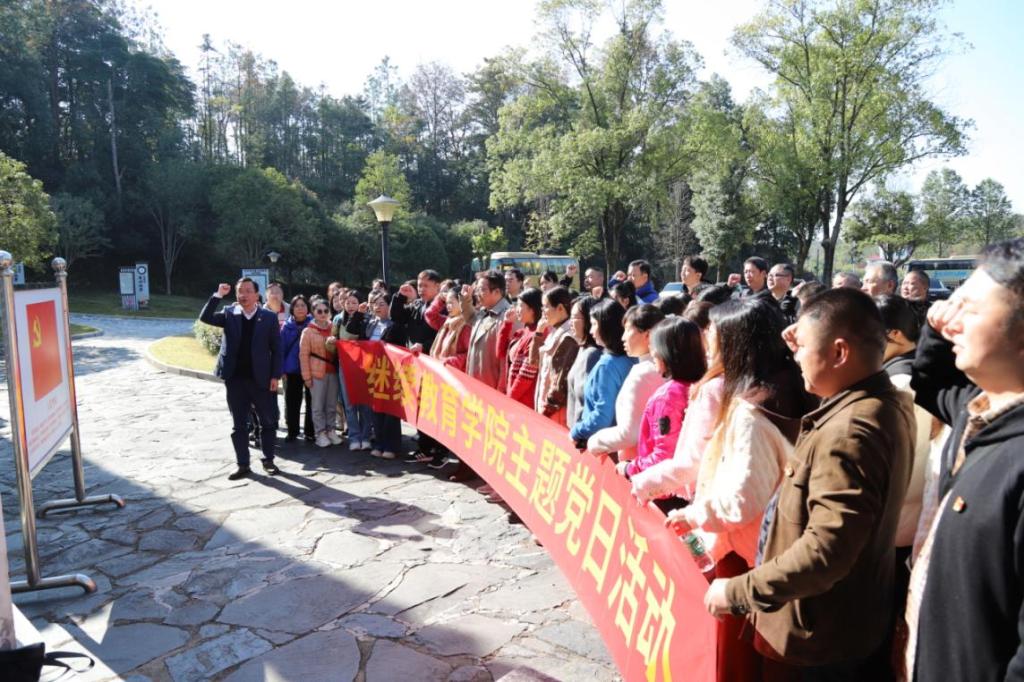 全体党员乘坐大巴抵达李维汉同志故居及陈列馆进行参观学习。在庄严肃穆的李维汉故居前,学院党委书记刘思强带领全体党员,面对鲜红党旗,重温入党誓词。铿锵有力的誓言回荡在故居上空,表达了全体党员坚守初心、担当使命的坚定决心。