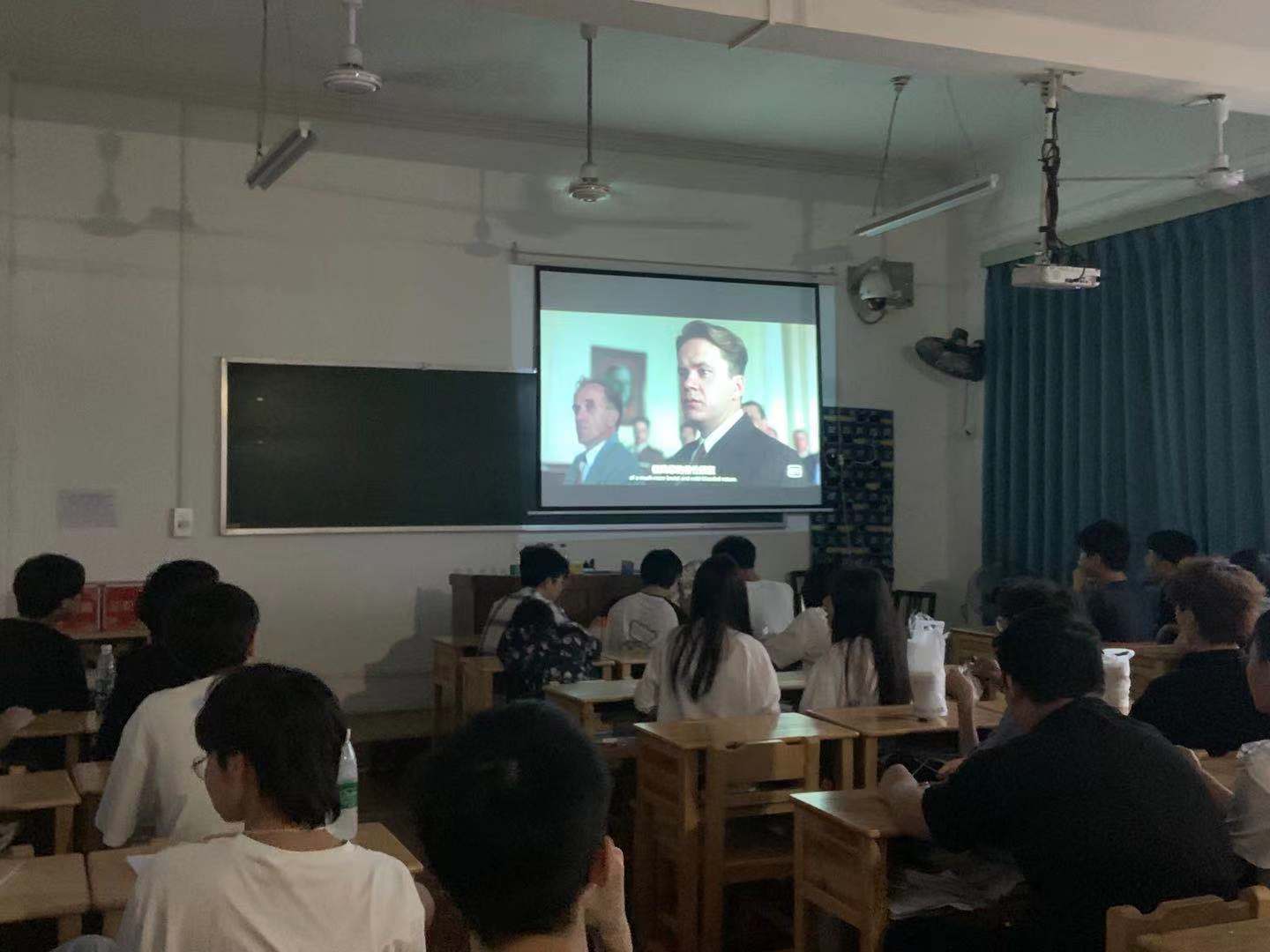各班级根据本班实际情况自由选择《风雨哈佛路》、《当幸福来敲门》、《阿甘正传》、《肖申克的救赎》等电影进行观看,在观影过程中,班主任老师根据影片的进度提出电影内容的相关问题,同学们在观看过程中边看边思考,观影结束后,同学们进行分组讨论,积极联系主题与电影阐发自己思考与感悟。