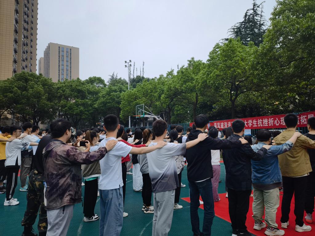 为引导同学们关注心理健康,提高抗挫折能力,5月25日,继续教育学院在金盆岭校区东苑篮球场,举办以“致敬百年谱华章,乘风破浪逆飞翔--—大学生抗挫折心理”为主题的心理拓展训练活动。