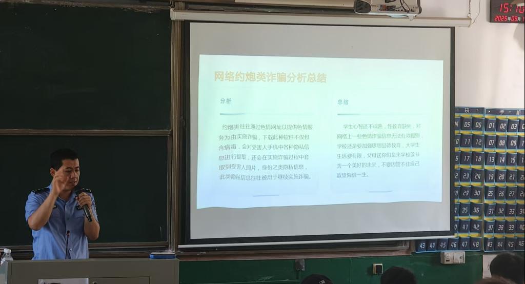 为进一步增强师生防诈骗意识,提升应对各类诈骗手段的能力,切实保障师生财产安全,9月17日下午2:30,继续教育学院在14教2001教室举行了校园防诈宣传专题讲座。本次讲座特邀长沙公安警务纪实片《守护解放西》中经验丰富、深受群众喜爱的“网红警官”任罡警长担任主讲,学院全体班主任、学生干部参加了学习。