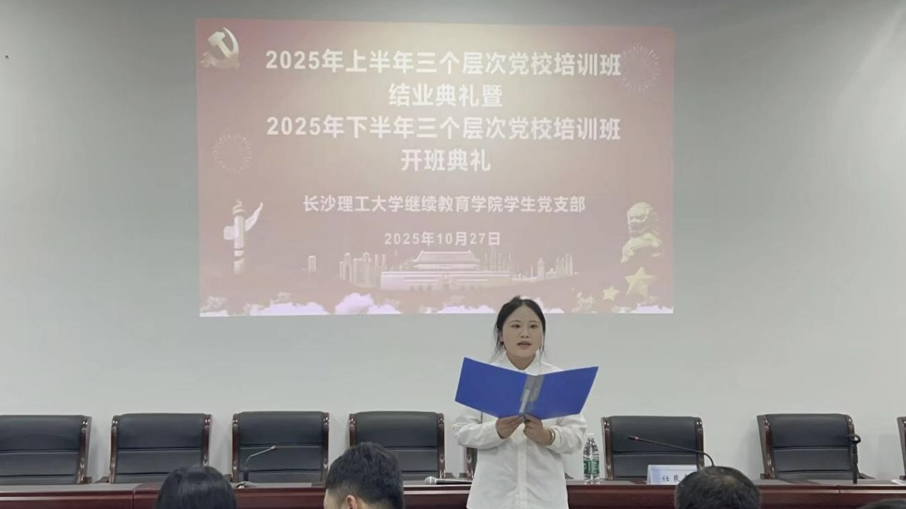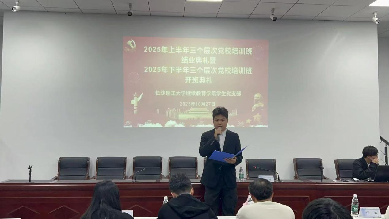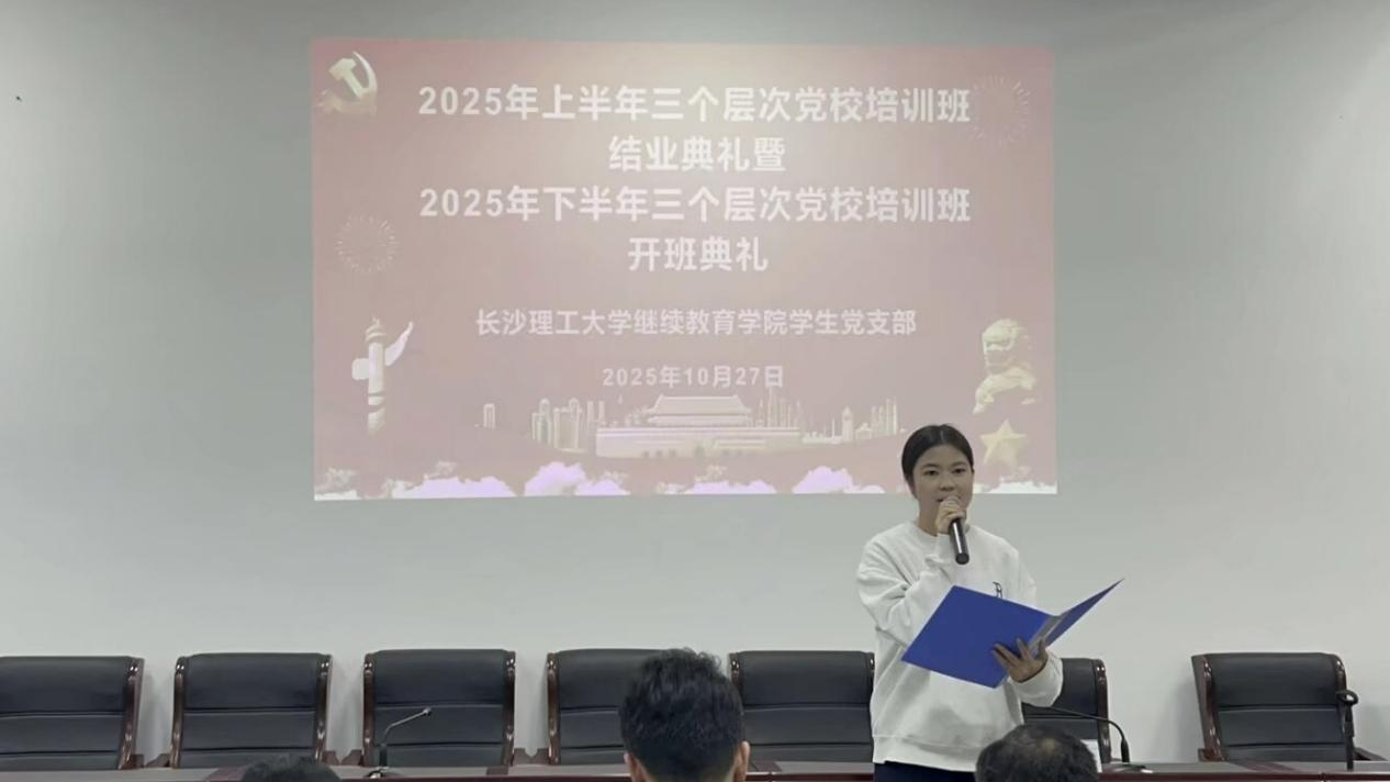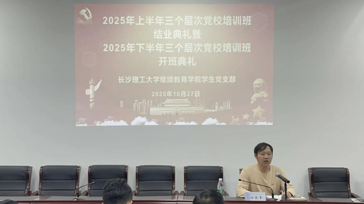 10月27日晚7:00,继续教育学院分党校在14教118会议室举行2025年上半年结业典礼暨下半年开班仪式。院党委副书记、副院长任艮丰,学生党支部书记谭冰,纪检委员单乃付,党务老师曾淑怡,各教学部学工负责人以及全体学生党员参加会议。
