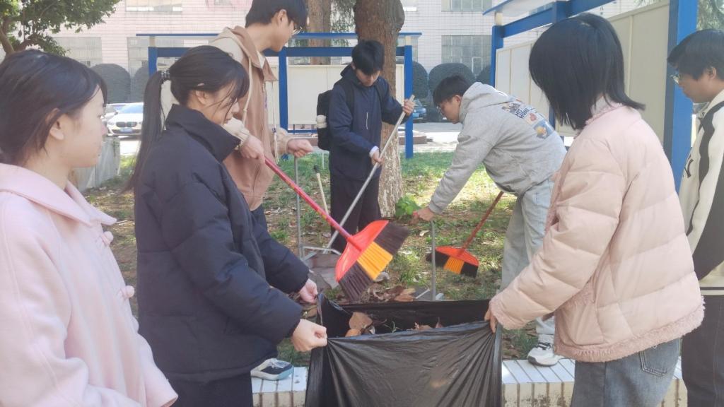 活动现场,大家迅速分组、明确分工,以饱满的热情投入到劳动中。教学楼前广场上,落叶在大家的清扫下逐渐聚成小堆;绿化带里,隐藏其中的垃圾和杂草被一一清理干净;楼道入口处,每一处卫生死角都不放过。大家不怕脏、不怕累,充分展现出优良的作风和团结协作的精神。经过近一个小时的辛勤付出,学院周边环境焕然一新,整洁有序的面貌让人眼前一亮。