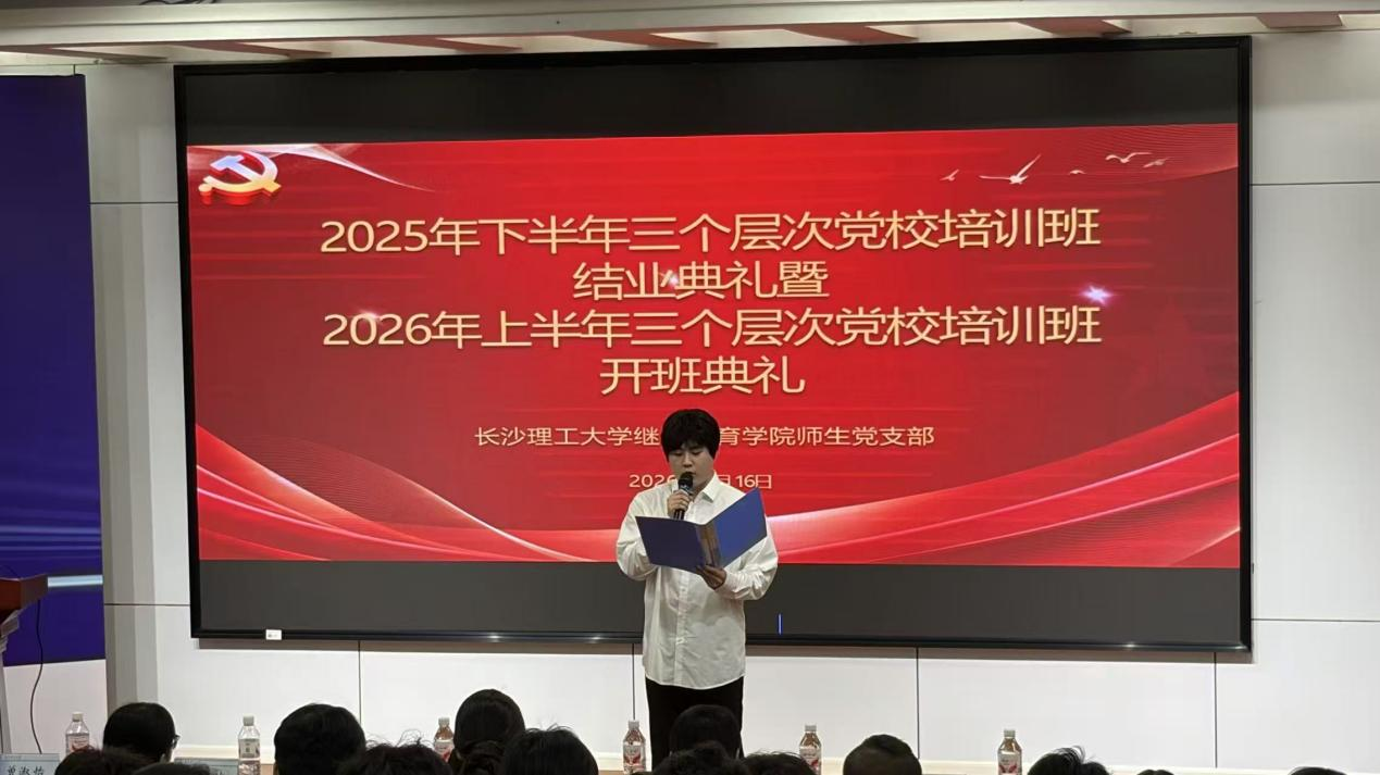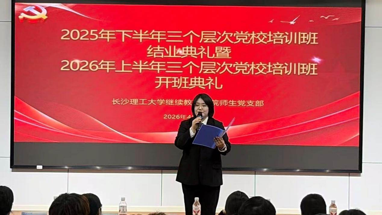 4月16日晚7:00,继续教育学院分党校在12教200会议室举行2025年下半年结业典礼暨2026年上半年开班仪式。院党委副书记、副院长任艮丰,师生党支部书记谭冰,宣传委员曾淑怡,各教学部学工负责人以及全体学员参加了会议。