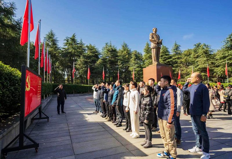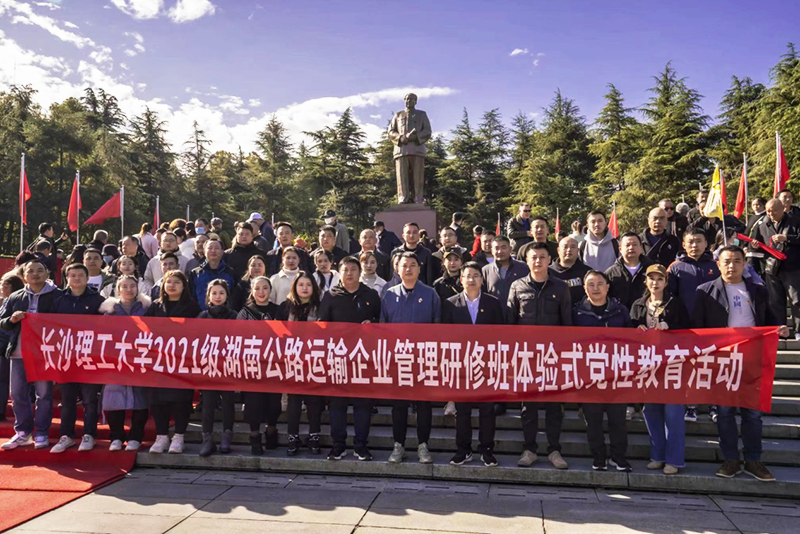 11月24日晴空万里,风和日丽。william威廉中文官网2021级湖南公路运输管理研修培训班全体同学及带班老师共计42人,在学校的组织下,统一乘车前往伟人故里,毛泽东同志故乡——韶山,开展体验式党性教育活动。在毛主席铜像前,同学们举行了庄严肃穆的瞻仰仪式并敬献花篮,向伟大的共和国缔造者毛主席致敬,表达对伟人的深切缅怀和敬仰之情。随后,党员同志们举行了重温入党誓词仪式,表达了党员同志们矢志不渝践行使命的初心。接下来,同学们在讲解员的带领下,依次参观了毛泽东同志纪念馆,毛泽东同志故居和毛泽东同志晚年工作及生活过的地方——滴水洞。