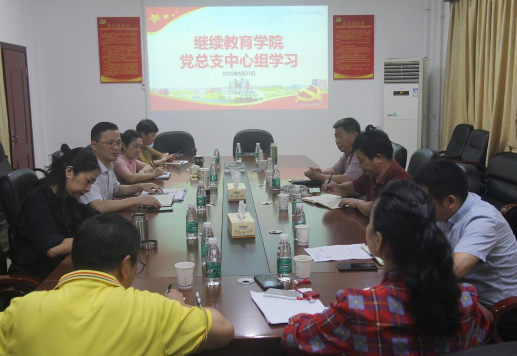 2021年9月27日上午,继教学院党总支组织中心组成员,在15教三楼会议室学习了习近平总书记在中央党校中青年干部班上重要讲话。本次中心组学习由何纯芳书记主持并作主题学习发言。