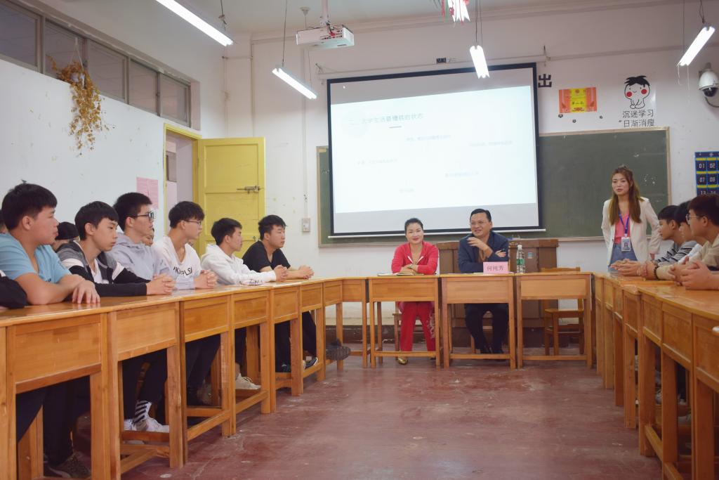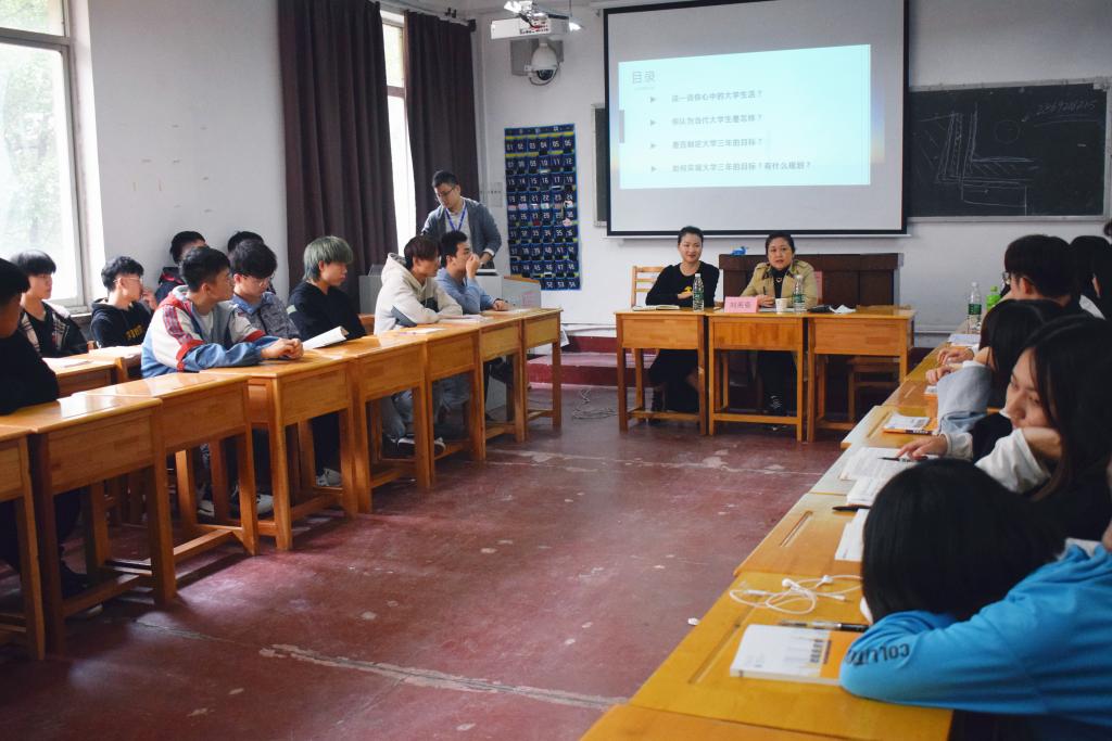 此次主题班会是为了让学生们深刻认识入学后需要完成的四大适应主题---角色适应、心理适应、学习适应、生活适应,以及如何通过自我探索、寻求帮助达到适应大学生活的目的。同学们分享高中生活、入学后的感受和大学规划。各位领导认真聆听同学们的发言,并作总结点评。