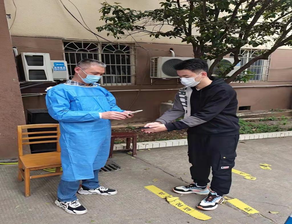 在检测现场的一个信息核对点上,支部书记陈会芳已参与几次,他总是说住在学校宿舍里,没有什么后顾之忧,可以为疫情防控多贡献力量。