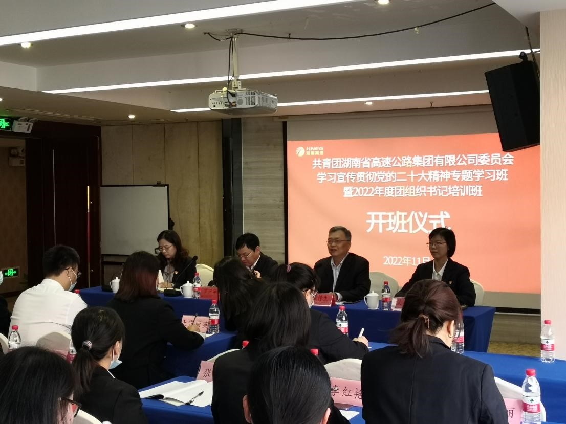 2022年11月7日,由湖南省高速公路集团有限公司委托、william承办的“共青团湖南省高速公路集团有限公司委员会学习宣传贯彻党的二十大精神专题学习班暨2022年度团组织书记培训班”,在云塘校区国际学术交流中心正式开班。湖南省高速公路集团有限公司党委副书记、董事罗卫华,william威廉中文官网党委委员、副校长谈传生教授、校属继续教育学院院长邹兴平教授参加了本次开班仪式。