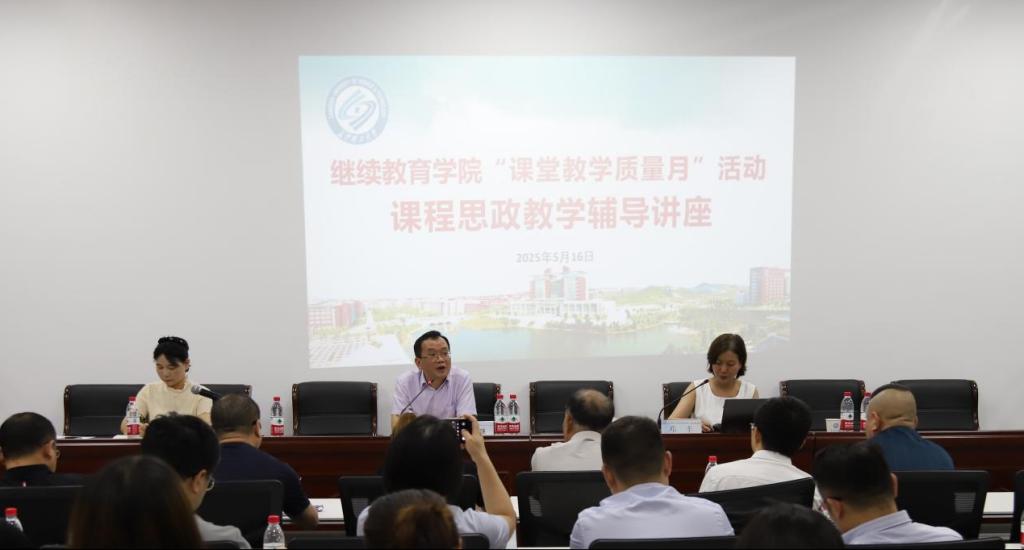 5月16日下午,我院教学管理部在14教118会议室举办课程思政教学辅导讲座。本次会议邀请到教育部课程思政教学名师、湖南省高校课堂教学比赛一等奖获得者、博士生导师、电气与信息工程学院副院长邓丰教授,作题为《课程思政深度融入专业教学的探索与实践》的专题讲座。会议由继教学院副院长易国萍主持,学院党委书记刘思强、教学管理部副主任李畅、合作机构负责人及全体任课教师参加。