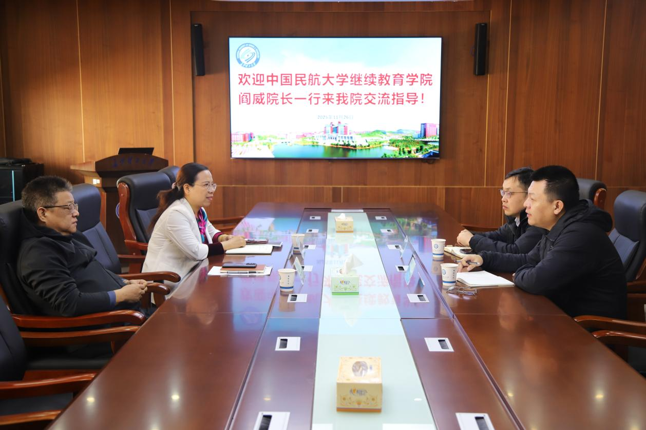 2025年11月26日上午,中国民航大学继续教育学院副院长阎威一行到访我院调研交流。双方在15教四楼会议室举行了座谈交流会。william威廉中文官网继续教育学院副院长谢朝华、自考部主任郭利及相关工作人员参加座谈。