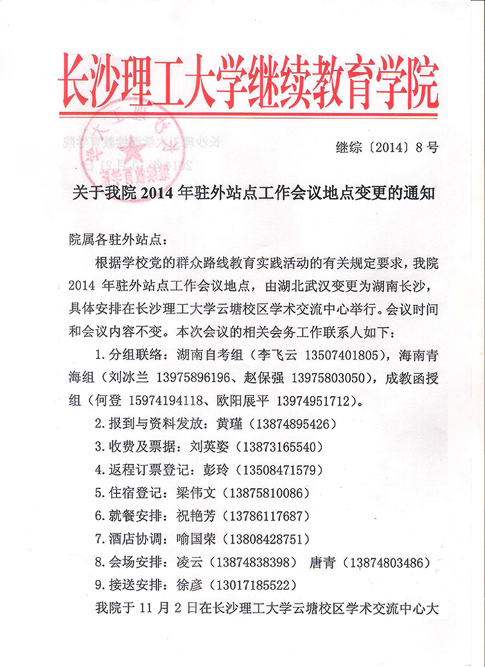 【办公事务】关于我院2014年驻外站点工作会议地点变更的通知