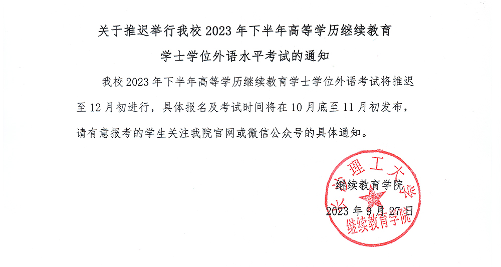关于推迟举行william2023年下半年学士学位外语水平考试的通知
