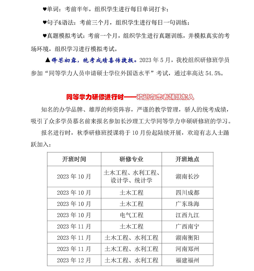 同等学力申硕研修班简讯