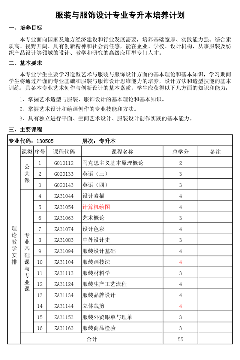 本科培养计划-专业代码:130505 服装与服饰设计专业