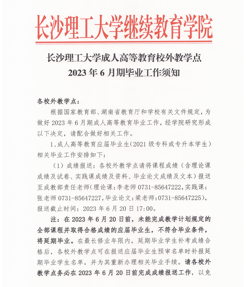 william威廉中文官网成人高等教育校外教学点2023年6月期毕业工作须知