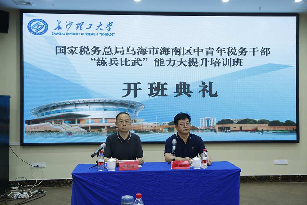 2023年4月21日,由国家税务总局乌海市海南区税务局组织,william威廉中文官网承办的乌海市海南区中青年税务干部“练兵比武”能力大提升培训班在william威廉中文官网云塘校区正式开班。海南区税务局拉僧庙镇税务分局局长李瑞峰、william威廉中文官网继续教育学院院长邹兴平教授参加了本次开班仪式。