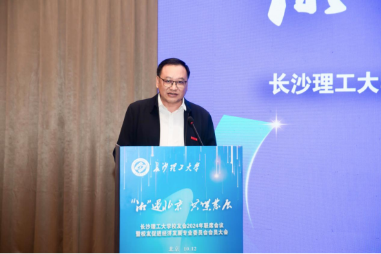 付宏渊向广大校友介绍了学校近一年来的建设发展情况。他指出,大学最伟大的作用是创新引领,大学最伟大的事业是为党育人、为国育才,大学最伟大的荣耀是校友。付宏渊表示,希望校友们传承长理精神,勇担强国使命,心系母校发展,为学科建设、人才培养、产学研合作等多提意见和建议,共同推进学校工作再上新台阶,更加主动融入国家发展大局,共同履行好校友促进经济发展专业委员会职能,当好“校友回湘”的宣传员、联络员、服务员,广泛发动校友关注湖南、支持湖南,为实现“三高四新”美好蓝图彰显“长理担当”。各地校友会要以更务实管用的举措提升整体效能,优化校友组织布局,创新校友活动平台,建强校友联络体系,推动构建母校与校友发展共同体。