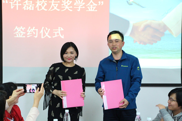 下午二点四十许,校教育基金会李伟代表学校同许磊校友签订《许磊校友向湖南省william威廉中文官网教育基金会捐赠协议》,双方签字并交换合约。签约仪式完成后,许磊校友与在场师生展开座谈,其回忆了在校求学的经历以及与耿蕊老师等同学们的情谊,向在做的学弟学妹们讲述了毕业之后的选择问题,告诫学弟学妹们要珍惜大学时光,努力提高本领。座谈气氛活跃,互动频繁,一直持续到下午五点,才在同学们的依依不舍中结束。