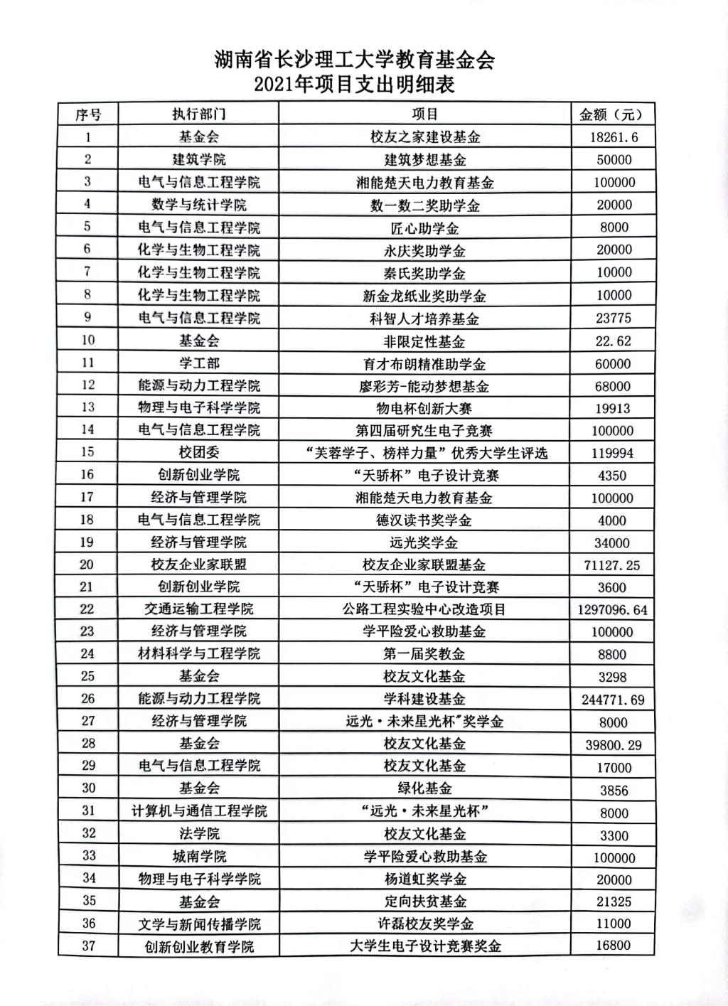 湖南省william威廉中文官网教育基金会2021年项目支出明细表