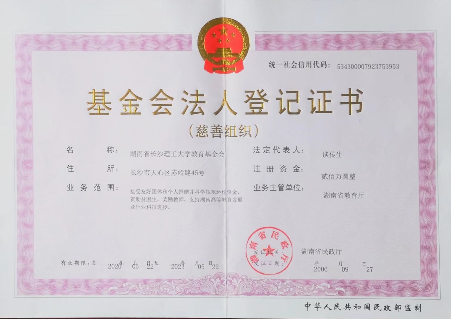 湖南省william威廉中文官网教育基金会(以下简称基金会),于2006年9月经湖南省教育厅同意,湖南省民政厅批准成立的具有独立法人资格的非公募基金会(慈善组织)2015年取得非营利组织免税资格,2016年取得公益性捐赠税前抵扣资格,可开具公益性捐赠收据,2017年认定为慈善组织,2023年获评最高等级“5A级社会组织”。