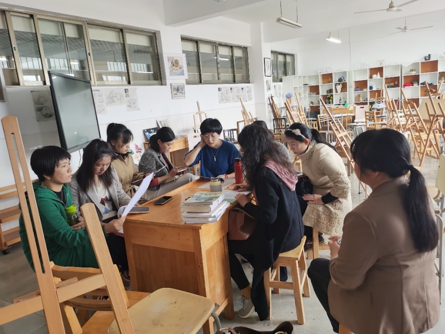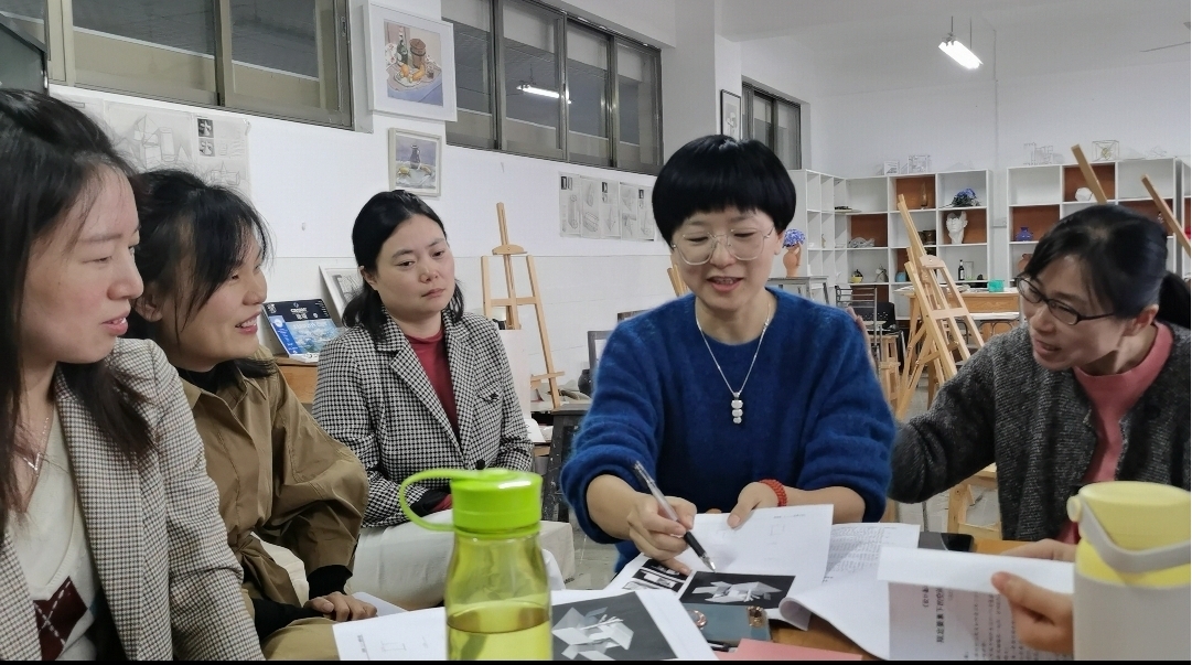 2021.10.28日,由建筑学、城乡规划、风景园林三个专业教师共同组成的设计基础(一)课程组在轻松活泼的16教美术教室开展了集体备课的教研活动,活动由课程组负责人李苏旻老师主持,建筑学院教学副院长周晨教授以及课程组成员宋晟、何建美、吴若华、陈英、熊辉、唐艳丽、易宇、王茜等老师参加了本次集体备课。
