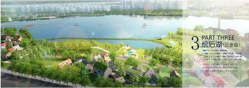 网红“后湖”是长沙旅游新名片,后湖设计采用三部曲:第一步留水留树、通江连山、复绿修路,重塑“大岳麓”生态公园;第二步塑示范、引核心、通文脉,复兴“新湘艺”水岸街区;第三步构筑“一带连三片”的空间格局,打造长沙中心城区宜居宜业的生态治理示范区。