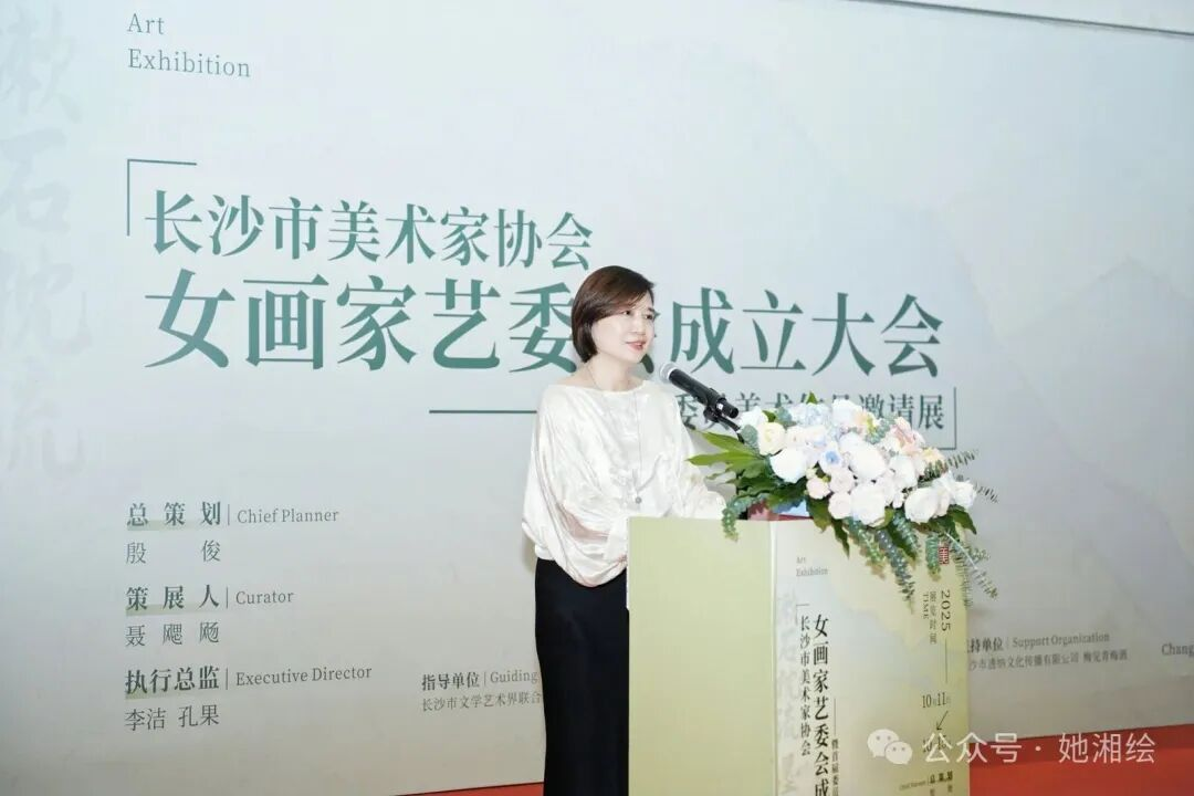 殷俊教授表示:这一艺委会的成立是一个崭新的起点,将以湘江不息为精神基底,构建专业交流平台,凝聚女性艺术力量;推动女性艺术创作在理论与实践层面的持续深化,彰显时代女性风采;拓展展示空间,促进艺术与社会互动。通过举办系列展览、参与公益活动、开展美育普及等多种形式,积极向社会推介女画家的优秀作品,展现当代女性艺术的魅力与活力。