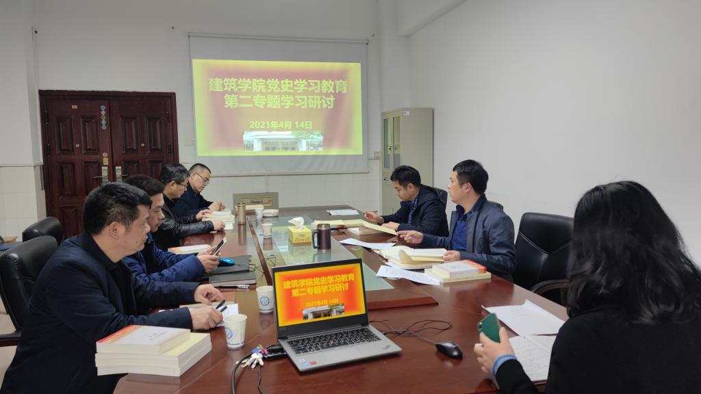 4月14日,建筑学院党委在金盆岭校区16-305召开中心组党史学习教育第二次专题学习研讨会,组织学习学校党史学习教育领导小组办公室关于党史学习教育相关通知精神和“学史增信”专题学习资料汇编相关内容,院党委书记邱国良主持,全体院班子成员参加。