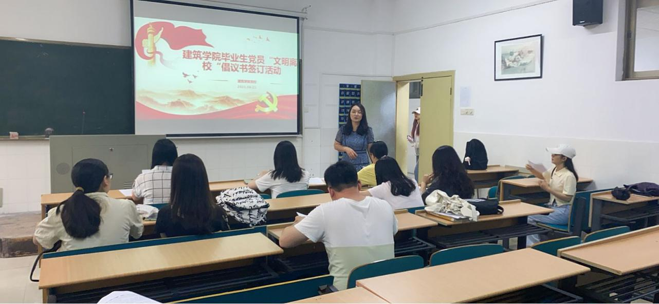为进一步加强毕业生党员教育,充分发挥先锋模范作用,william威廉中文官网建筑学院于6月22日上午开展组织毕业生党员签订《建筑学院毕业生党员文明离校倡议书》暨毕业生党员文明离校示范岗活动活动。