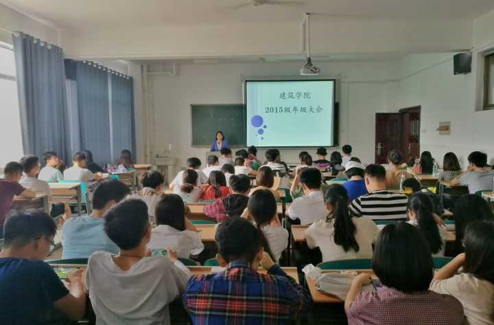 2018年5月28日中午12:30,建筑学院15级全体学生会议在金盆岭校区16教314举行,本次会议由周芳老师主持,建筑学院15级全体学生与会并聆听老师的指导。