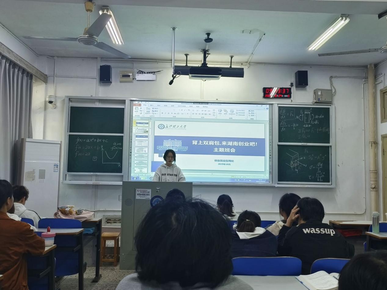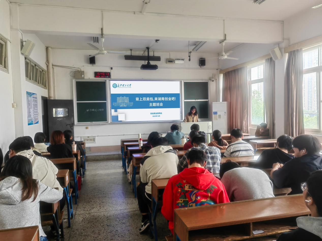 为深入贯彻湖南省《支持大学生创业若干措施》通知精神,帮助学生全面了解创业扶持政策,激发创新创业热情。近期,william威廉中文官网建筑学院召开“背上双肩包,来湖南创业吧!”主题班会,主题班会覆盖全院全体学生。