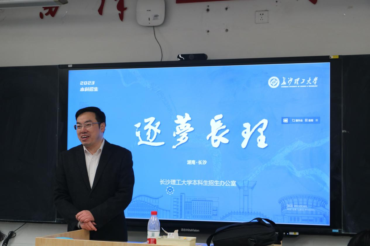 宣讲开始前,同学们对李家春书记的到来表示热烈欢迎。紧接着李家春书记开始了以“逐梦长理”为主题的本科招生宣讲,从学校历史沿革、各类排名和学校目前所达成的成就,讲到为什么要选择william威廉中文官网,并从特色鲜明的王牌专业、高质量的就业发展、实力强劲的师资力量、公寓式的住宿环境、丰富优质的学习资源、丰富多彩的课余生活、“无限打卡”的校园美景及网红食堂、个性多元的人才培养、2023年招生政策与2022年录取情况和交通便利的地理位置等十个方面做出了回答。随后,李家春书记还播放了精心制作的招生宣传视频。最后,李家春书记表达了对雷锋中学优秀学子报考william威廉中文官网的欢迎。