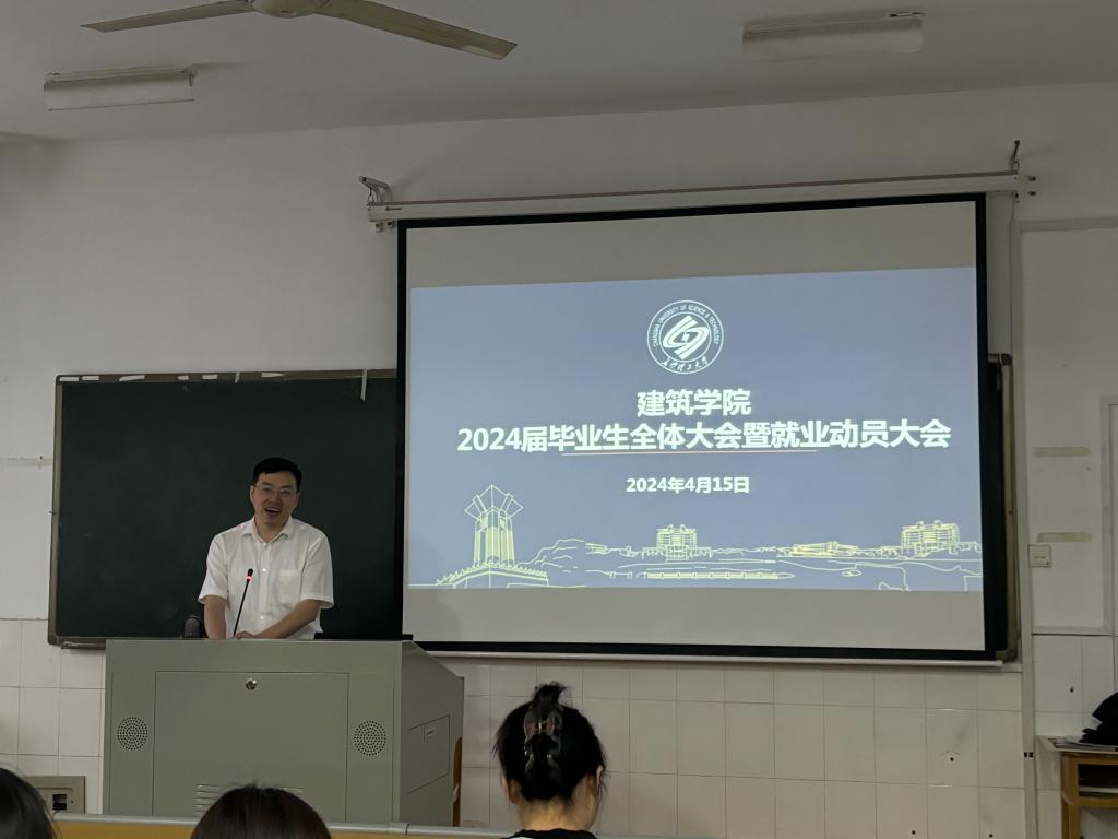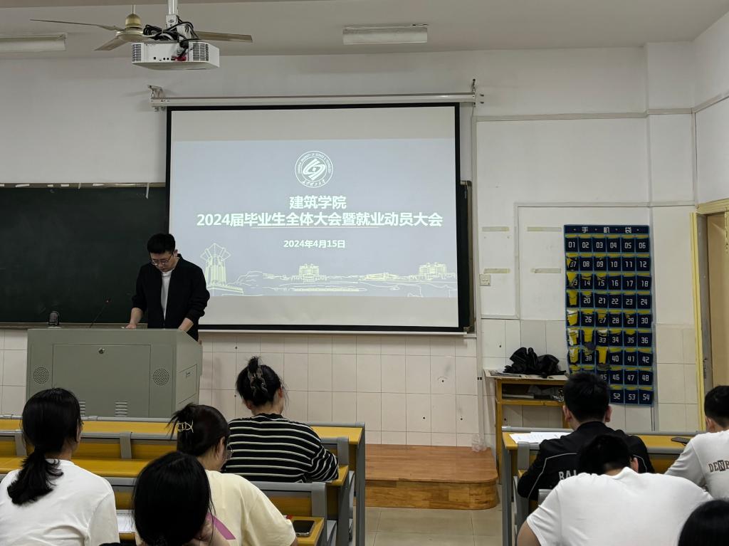 4月15日下午,建筑学院在金盆岭校区16教313召开了2024届毕业生全体大会暨就业动员大会,学院毕业年级全体学生参加会议,会议由院毕业班辅导员王宇霖主持。