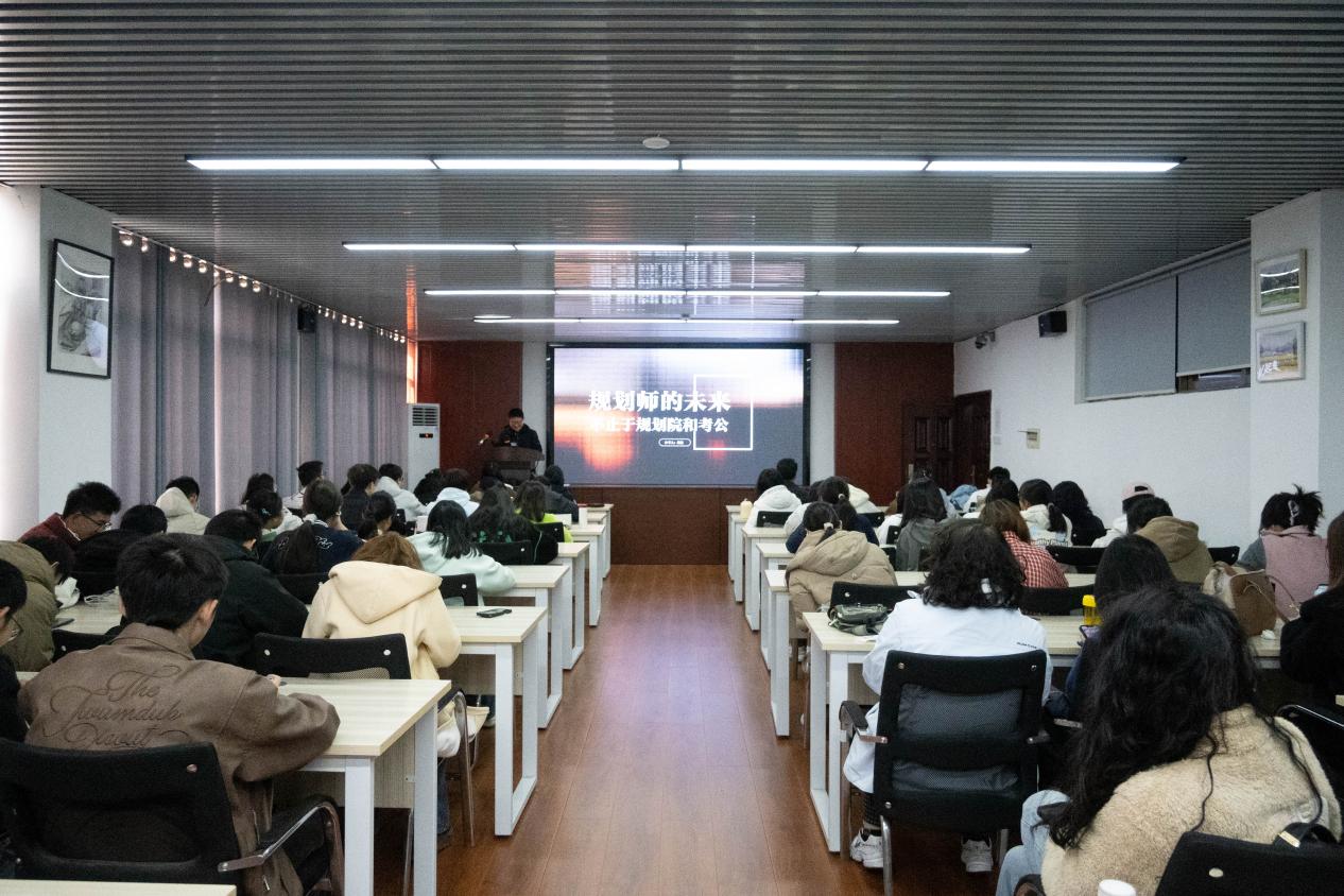 2025年12月18日上午,湖南楚林集团创始人、国土空间一级规划师康健女士应邀我院城乡规划专业全体2025级本科及研究生新生开展了一场别开生面的生涯规划讲座。本次讲座由城乡规划系主任贺鹏主持,旨在帮助新生在专业学习之初树立清晰的发展方向,探索多元成长路径。