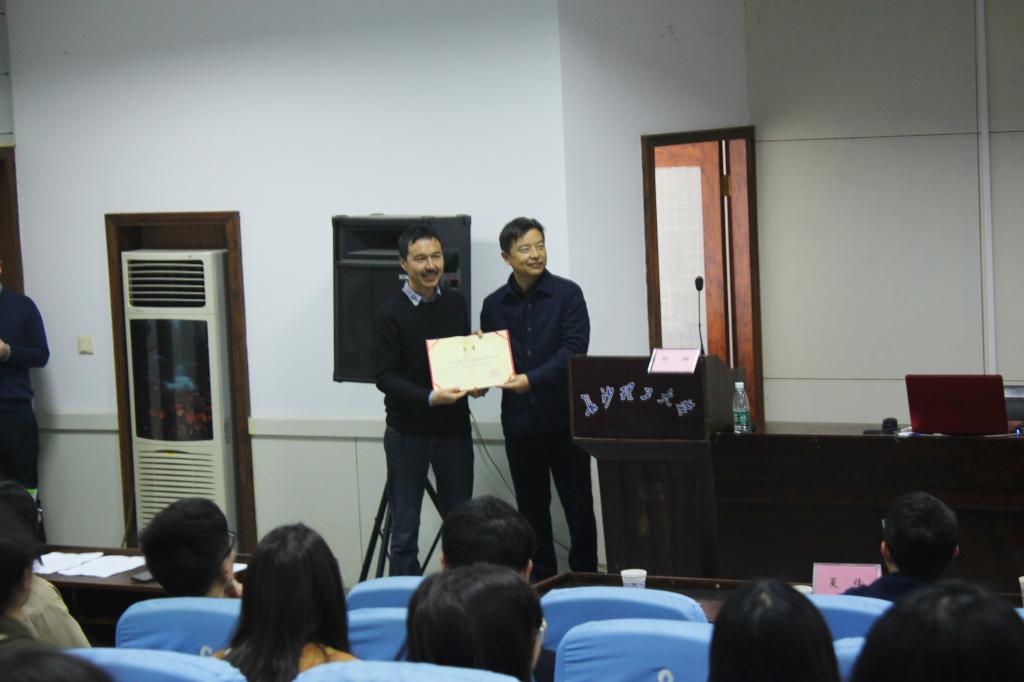 讲座结束,杨瑛院长为桂学文颁发聘书,期待在往后能与学生们进行面对面交流,为其提出建议,促进建筑学院更好地发展。