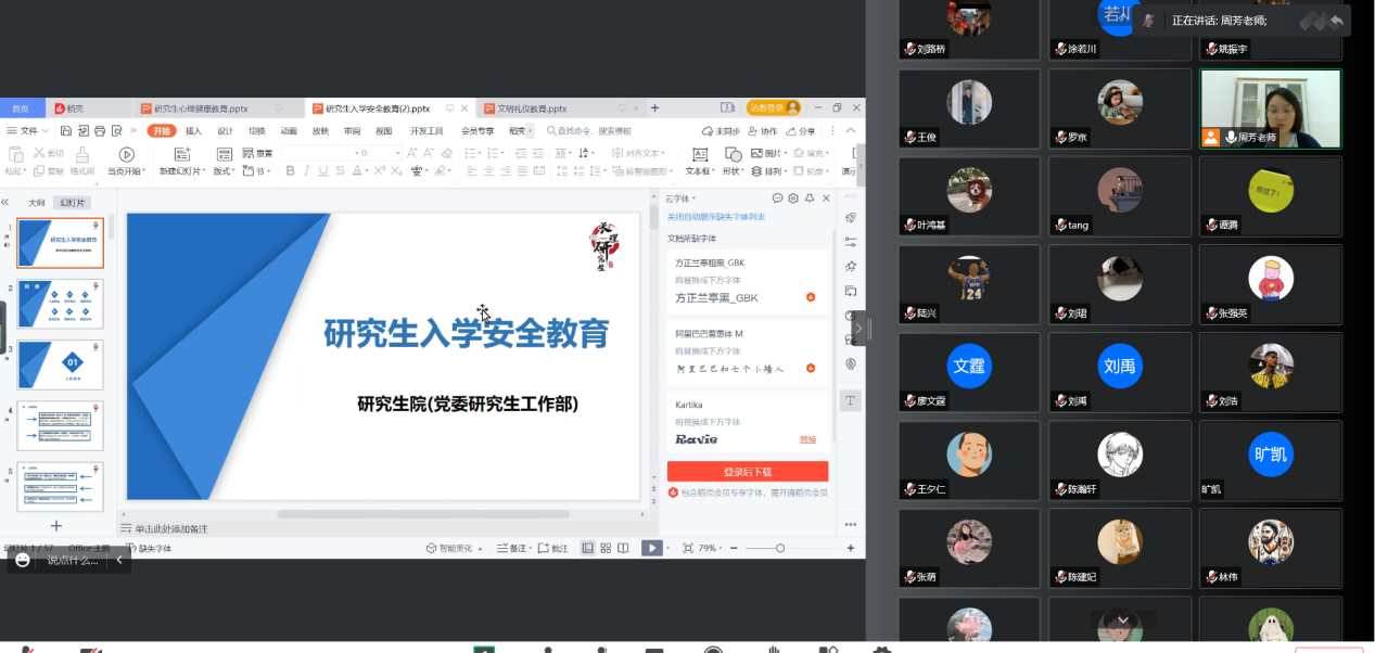 2022年8月29日14:30,建筑学院召开研究生安全教育及心理健康教育专题学习线上会议,学工办周芳老师主持会议,2022级全体研究生新生参会。