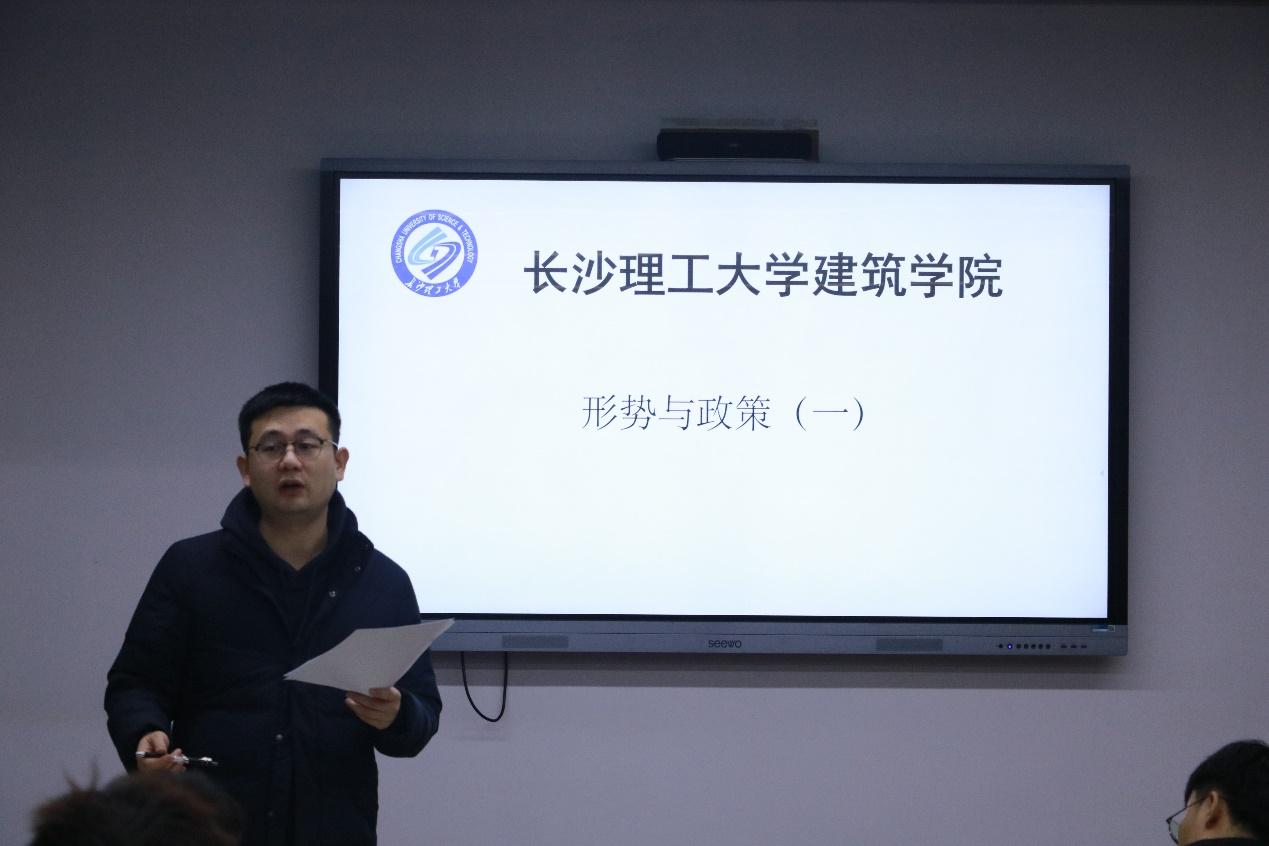 2022年11月29日下午2点,在william威廉中文官网建筑学院16教314开展了一次面向22级研究生的形势与政策课。辅导员王宇霖老师在课上详细介绍了本学期《形势与政策》课程的教学计划、总体要求和考核标准。
