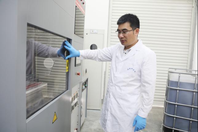贾传坤教授在首款石墨烯电极设备前开展相关实验
