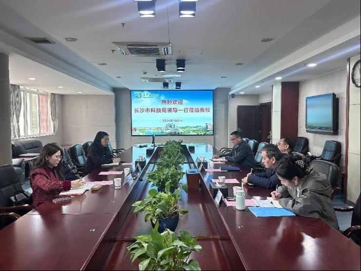 3月8日上午,长沙市科技局党组书记、局长郭塨一行来william调研科技创新工作。校党委委员、副校长刘朝晖出席会议,科技处、资产经营投资公司相关负责人参加了座谈会,会议由刘朝晖主持。